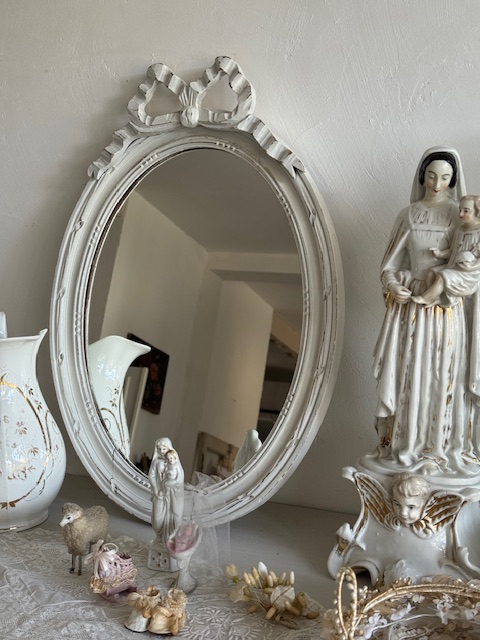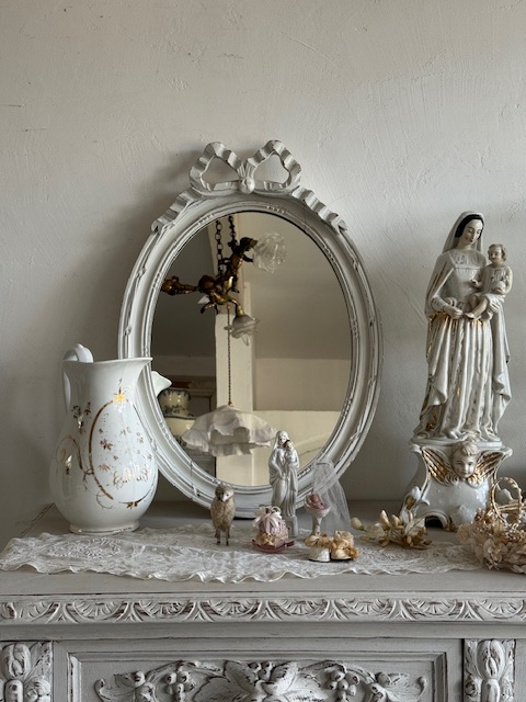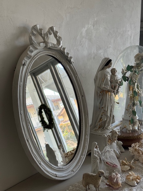 空間にやさしい陰影と奥行きを与えてくれるフランスアンティークならではの美しいミラーです。