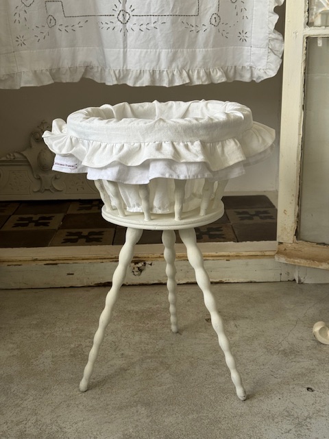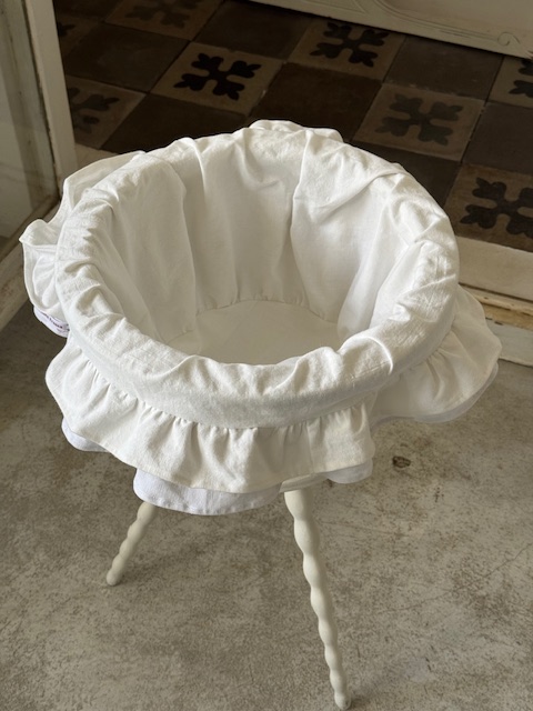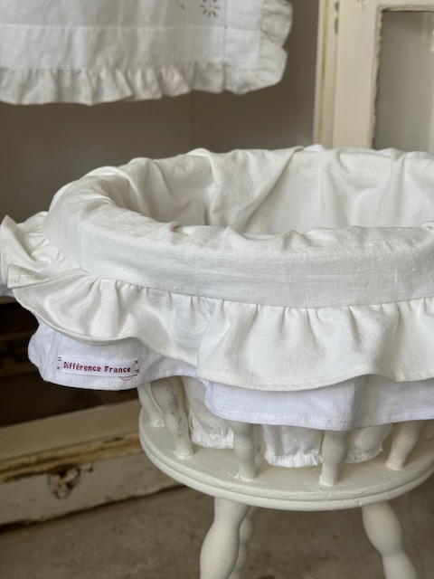 内側には1900年初頭のフランスアンティークリネンを使用したフリル付きカバーをセットしています。
