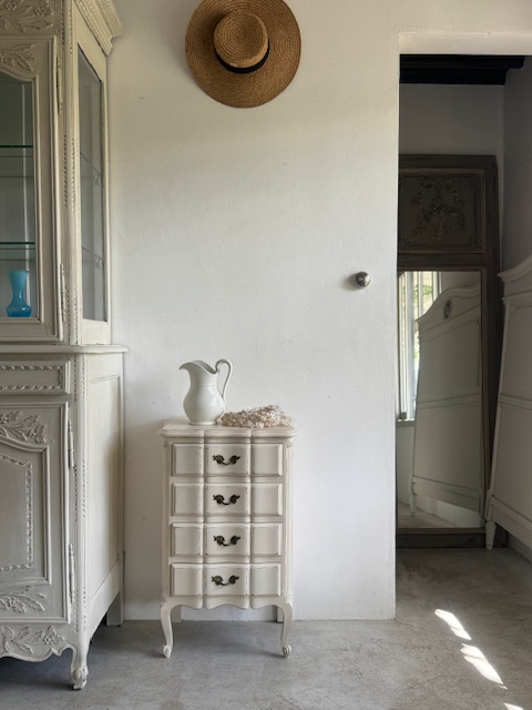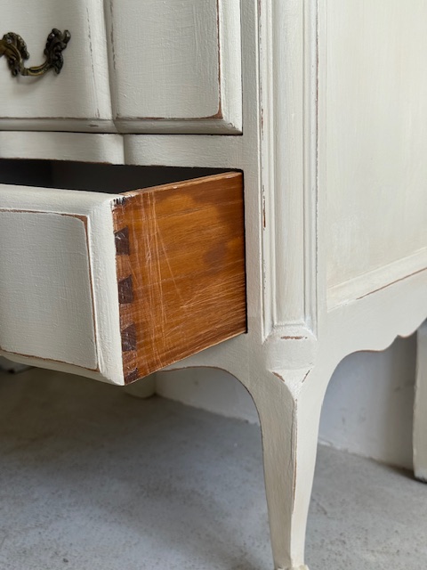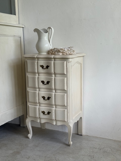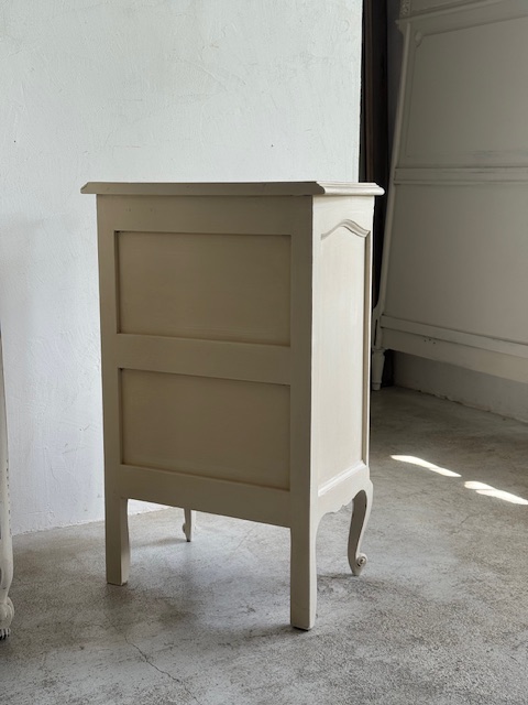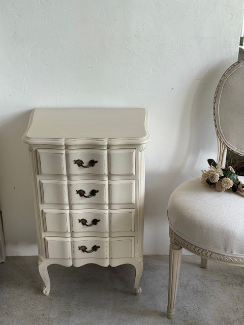 引き出し部分は正面から見ても側面から見ても立体的な曲線の彫りがあり、どの角度から眺めても手仕事の温もりを感じられる逸品です。