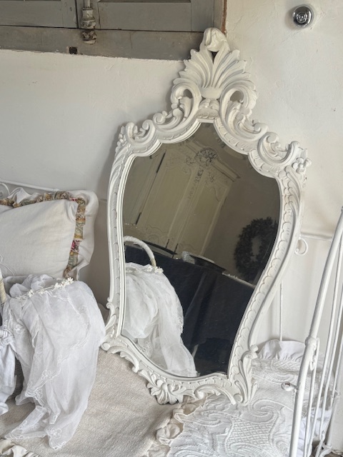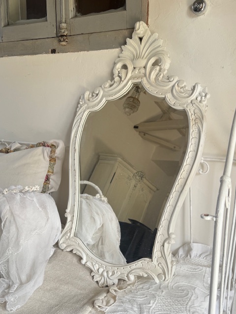 木製フレームはホワイトカラーでシャビーで柔らかな雰囲気が魅力です。