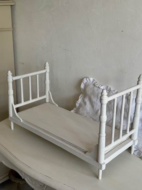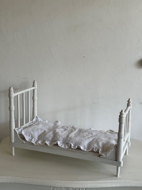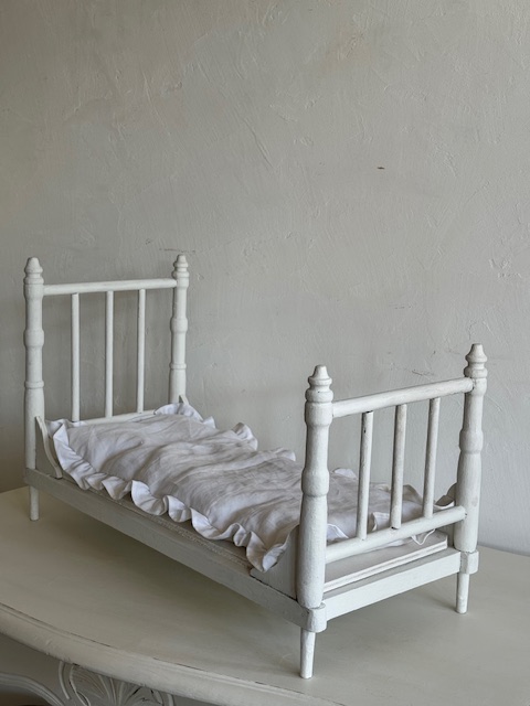 1930年代のフランスアンティーク木製ドール用ベッド。