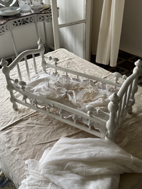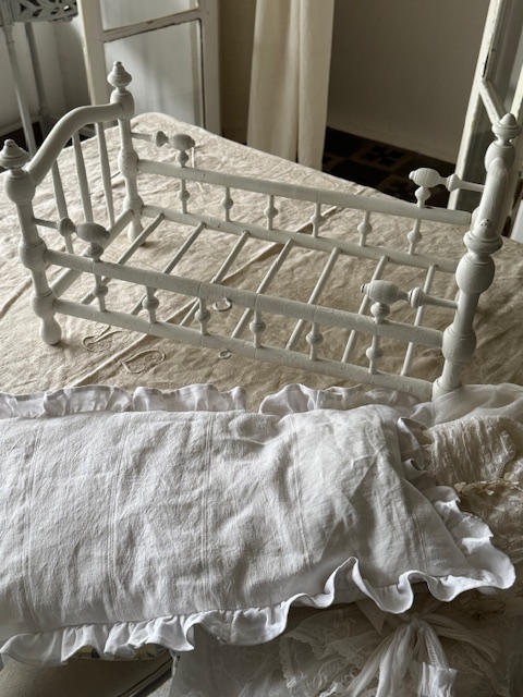 木製ホワイト ドールベッド(マットクッション付)