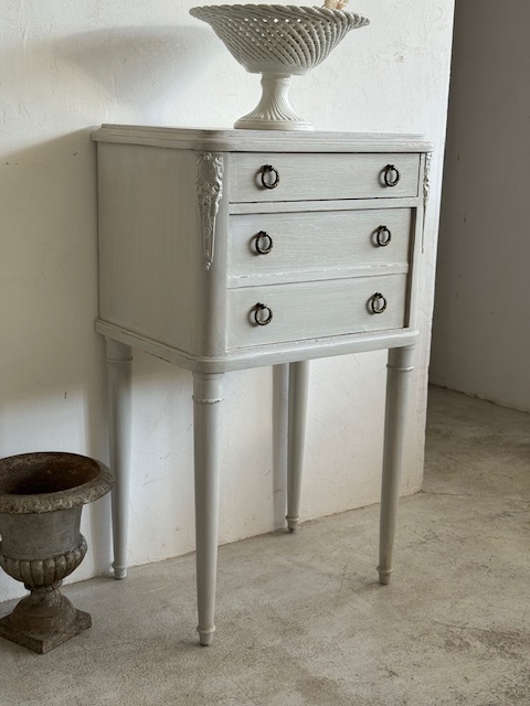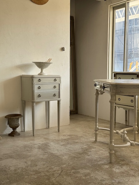 クラシカルでありながら軽やかさもありベッドサイドはもちろん玄関やリビングのアクセント家具としてもおすすめです。